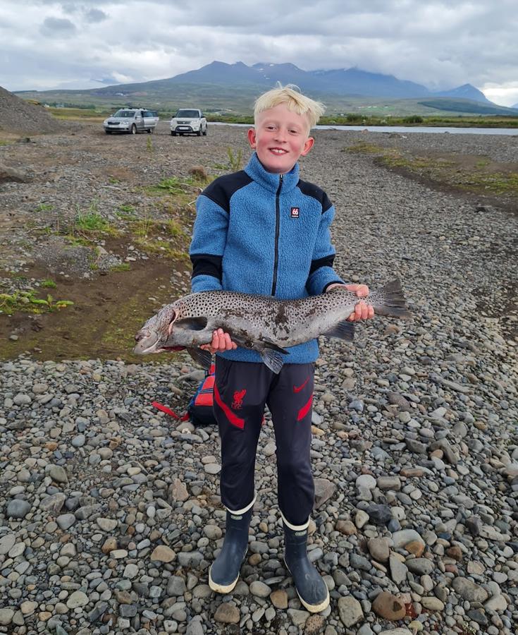 Dagur Óli sem er að verða tíu ára datt heldur betur í lukkupottinn s.l fimmtudag þegar hann var við veiðar á svæði 2 í Hörgá ásamt föður sínum. Við Hlaðnabakka féll þessi boltaurriði fyrir maðknum hans Dags og reyndist þessi flotti fiskur vera 10 pund og 75 sm. Það er ekki oft sem svo stórir urriðar veiðast í Hörgá og samkvæmt rafrænni skráningu í veiðibók SVAK síðustu 16 ár er þetta sá stærsti. Fram að þessu var stærsti skráði urriði úr Hörgá 73 sm og veiddist hann á Þelamerkurbreiðu á svæði 3 2011. Við óskum því unga veiðimanninum Degi Óla innilega til hamingju með fenginn.