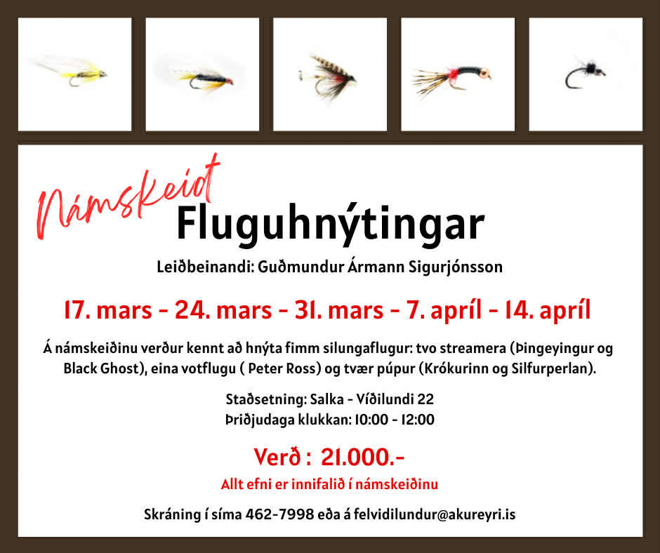 Það var góð mæting á síðasta hnýtingakvöldið okkar og langar okkur því að bjóða uppá á eitt í viðbót. Það verður á mánudaginnn 16.febrúar kl 19:30-21:30 í matsal Brekkuskóla.